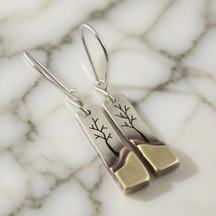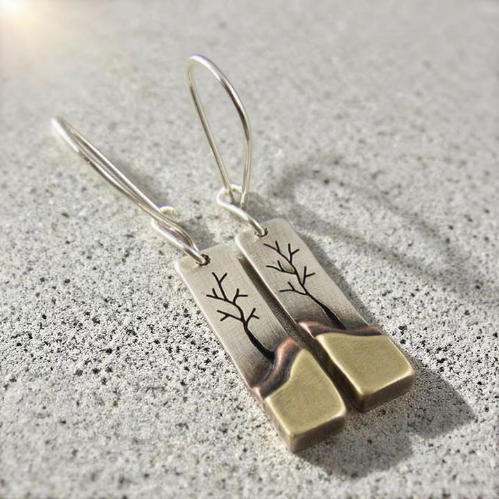 Handmade Vintage Silver and Copper Tree Earrings for Women