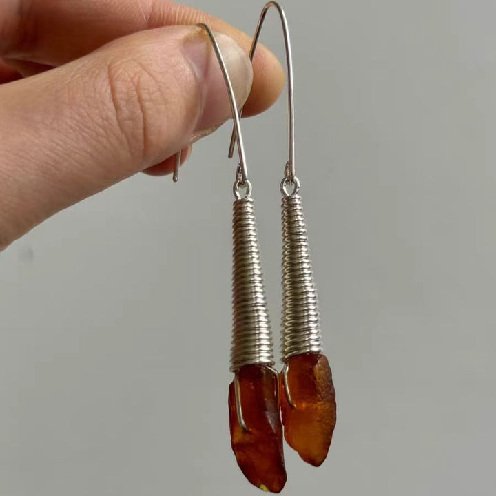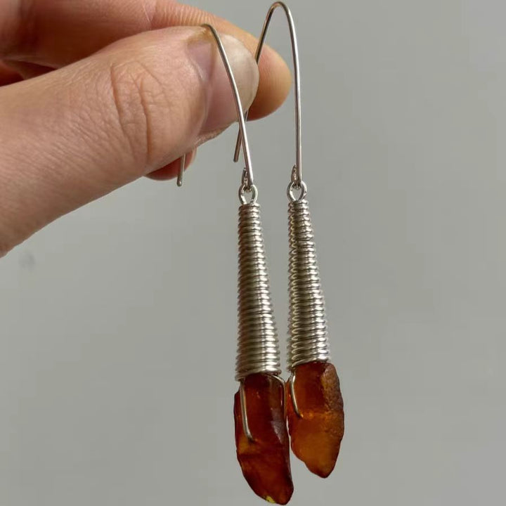 Artisan Handmade: Every pair of these earrings is meticulously crafted by hand, ensuring that each piece is a one-of-a-kind work of art. The process of shaping the silver hooks, coiling the wire around the amber, and assembling the earrings showcases exceptional craftsmanship and attention to detail.