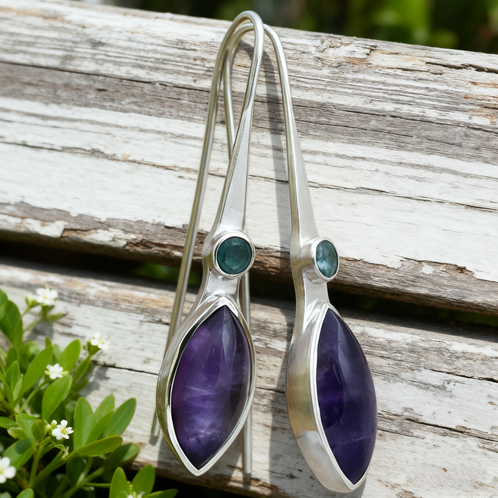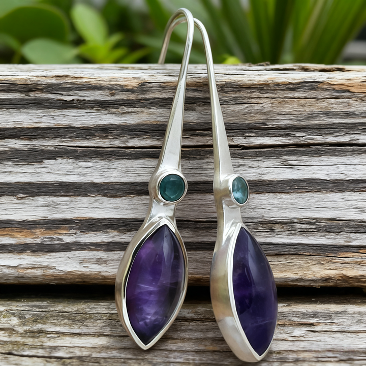 Artisan Handmade: Every pair of these earrings is meticulously crafted by hand, ensuring that each piece is truly one - of - a - kind. From shaping the silver into the elegant elongated forms to precisely setting the amethyst and blue gemstones, every step reflects exceptional craftsmanship and attention to detail.