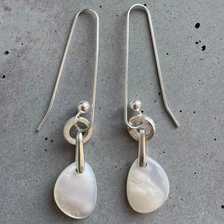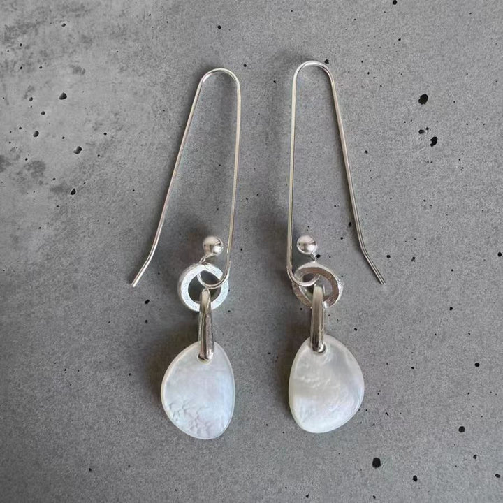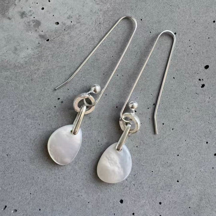 Handmade Vintage - Style Silver Earrings with Shell Pendants