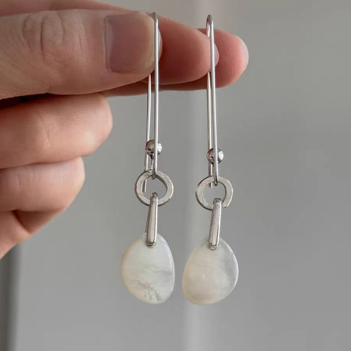 Unique Vintage Design: The combination of the elongated silver hook, silver rings, and teardrop - shaped shell pendant creates a distinct vintage aesthetic. The design is both elegant and versatile, easily pairing with a wide range of outfits, from formal dresses to casual jeans and a blouse, adding a touch of old - world charm to any look.