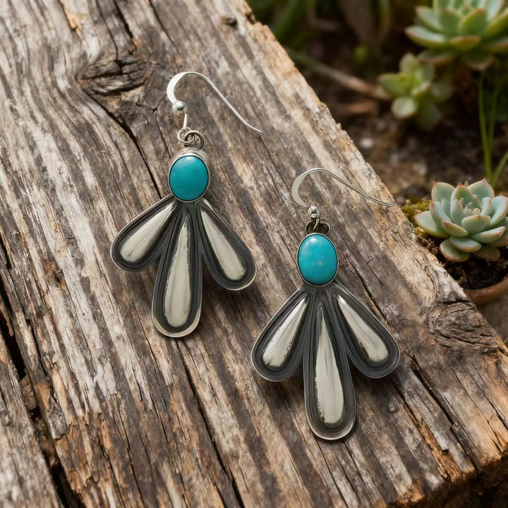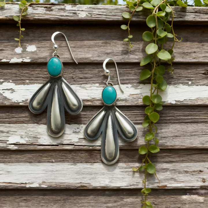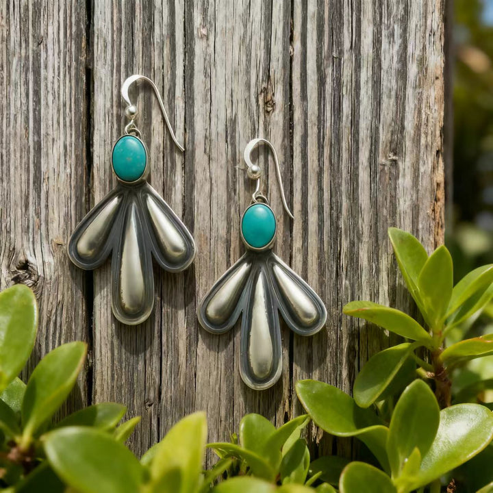 Artisan Handmade: Every pair of these earrings is meticulously crafted by hand, ensuring that each piece is truly one - of - a - kind. From shaping the silver into the petal - like forms to precisely setting the turquoise stones, every step reflects exceptional craftsmanship and attention to detail.