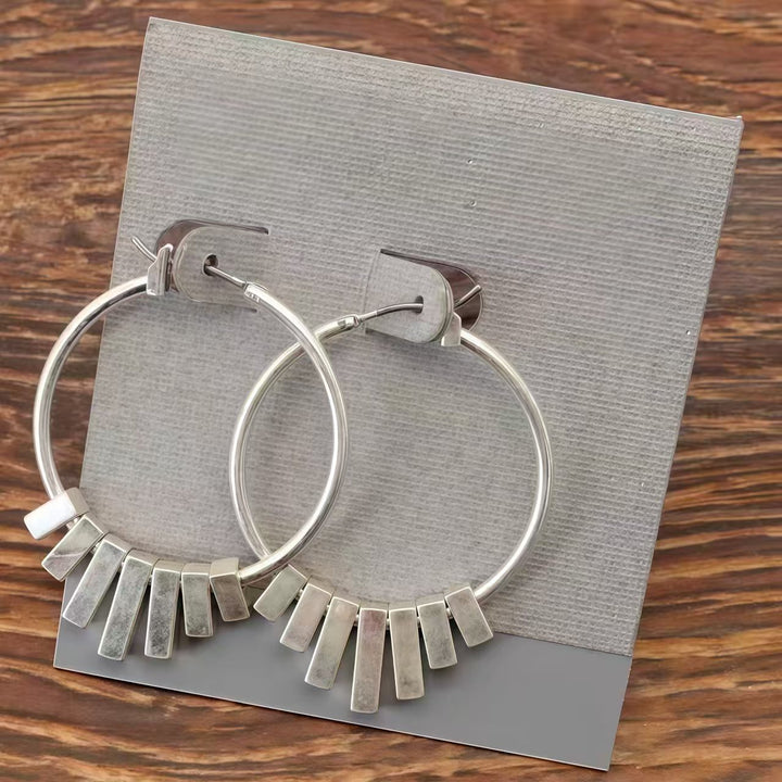 Handmade Vintage - Style Silver Hoop Earrings with Geometric Accents