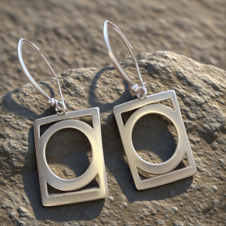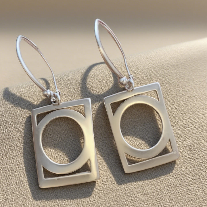 Modern Geometric Sterling Silver Earrings with Round Cutout Design