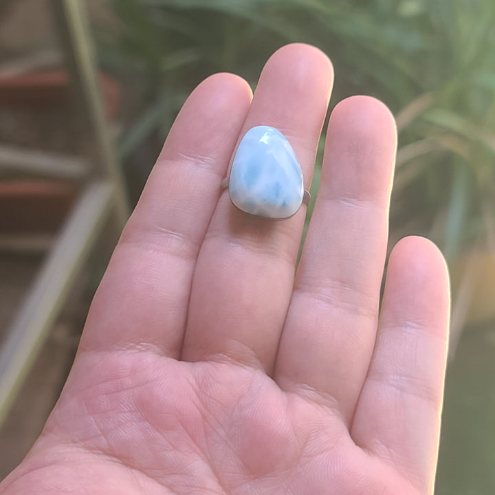 Natural Larimar Ring – Handcrafted Caribbean Blue Stone Jewelry in Sterling Silver Setting