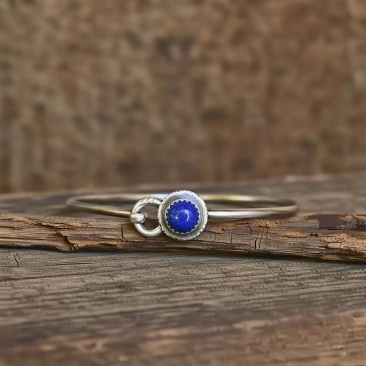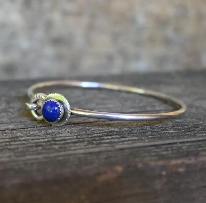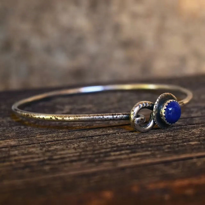 Rustic Lapis Lazuli Sterling Silver Bangle Bracelet